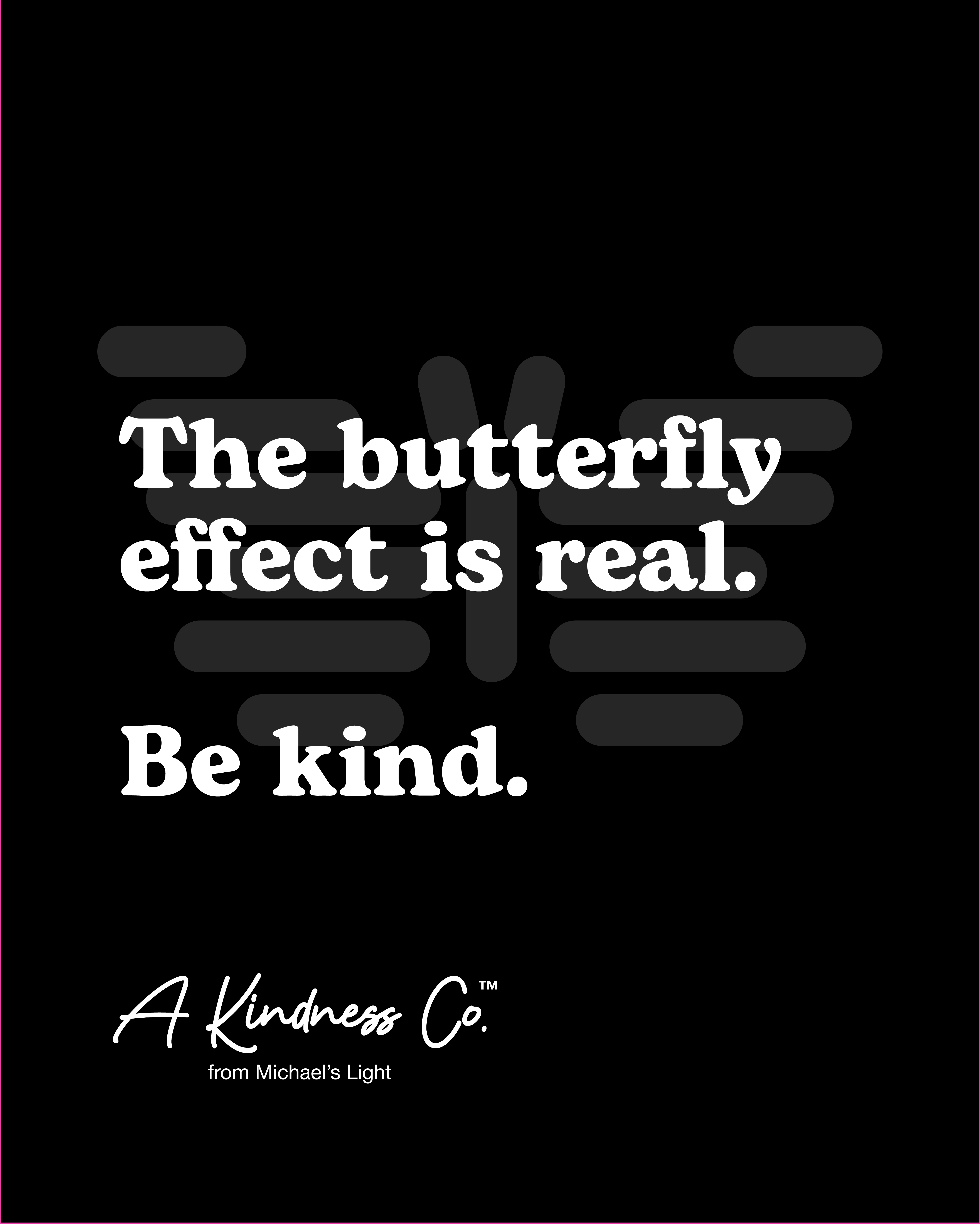 We believe the butterfly effect is undeniable. One simple kind act can create a stream of kindness that ripples through our inner circles, our communities, and beyond.
