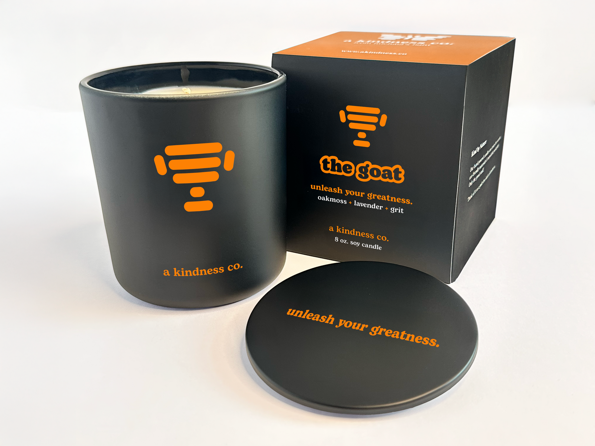 The goat from A Kindness Co. is a soy wax candle scented with oakmoss, lavender, and a touch of grit to unleash your greatness. It's not about luck or being in the right place at the right time. You've worked hard and it's all inside you. You are the GOAT.